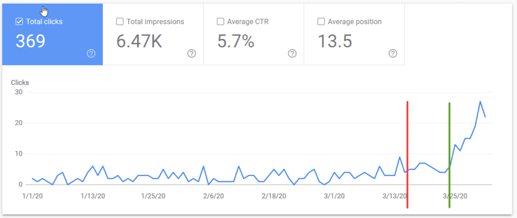 Ez törént velem idén is. 2020. március 15-én építettem egy releváns, hiteles linket egy oldalra. Majd nem történt napokig semmi. De aztán 2020. 03. 24-én megindult a forgalom felfele.
